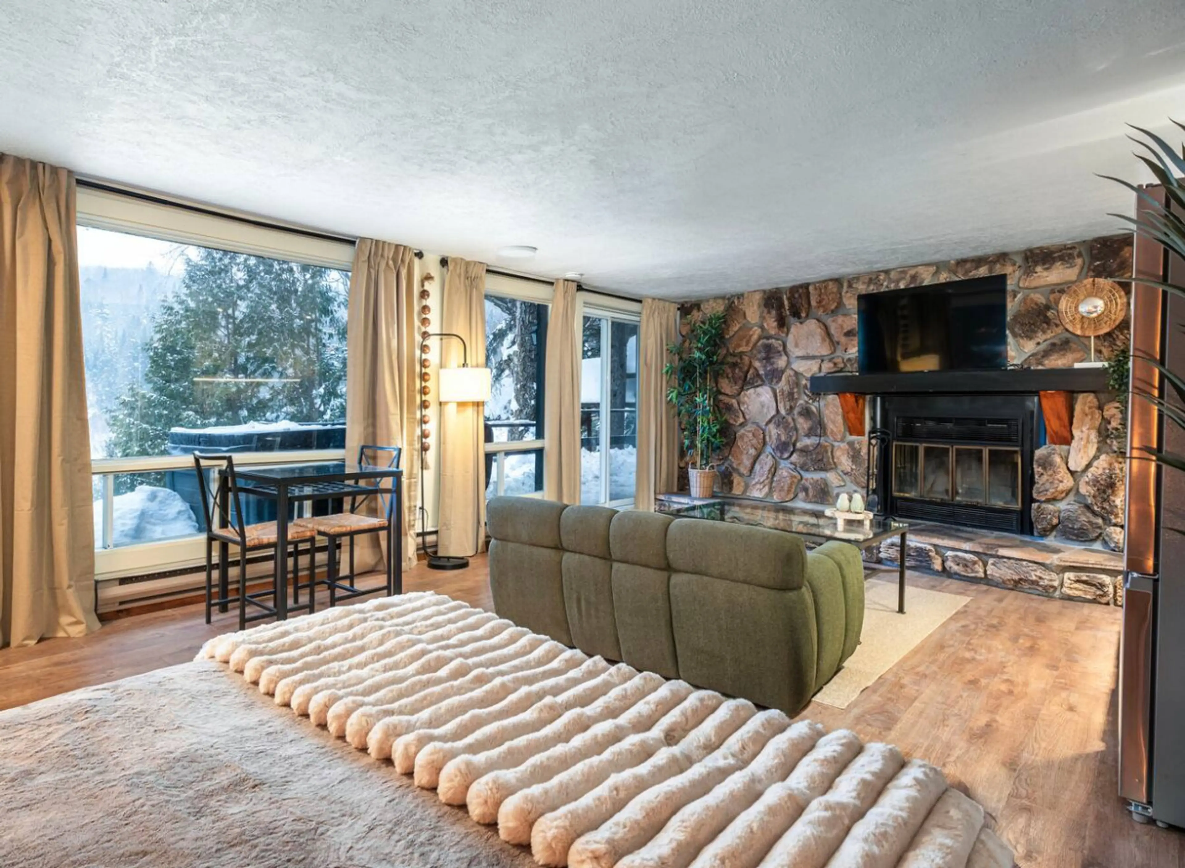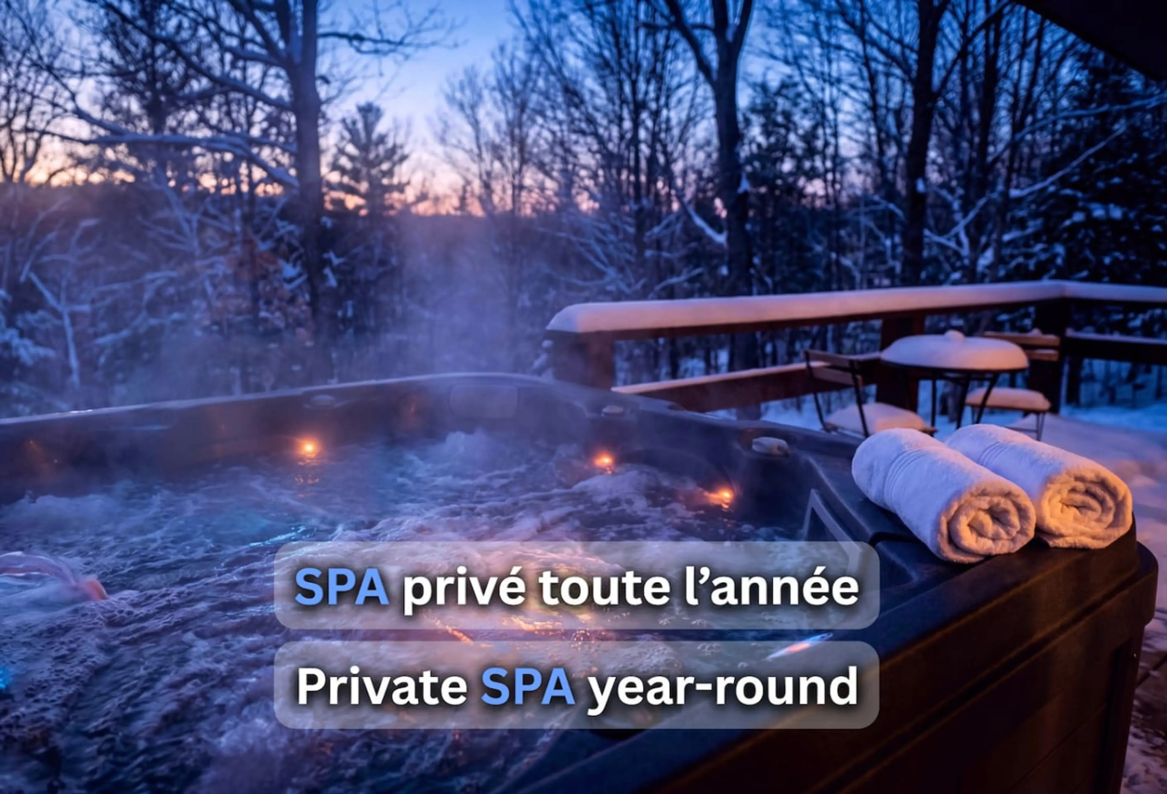Escape to HILDA, a romantic lakefront chalet with a private spa, indoor fireplace, and breathtaking views of Lake Sarrazin perfect for couples. Enjoy swimming, kayaking, stargazing, and year-round relaxation in a peaceful Laurentian setting.